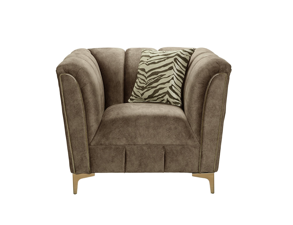 Miami Armchair In Dapple Chocolate Brown Fabric With Zebra Truffle Scatters